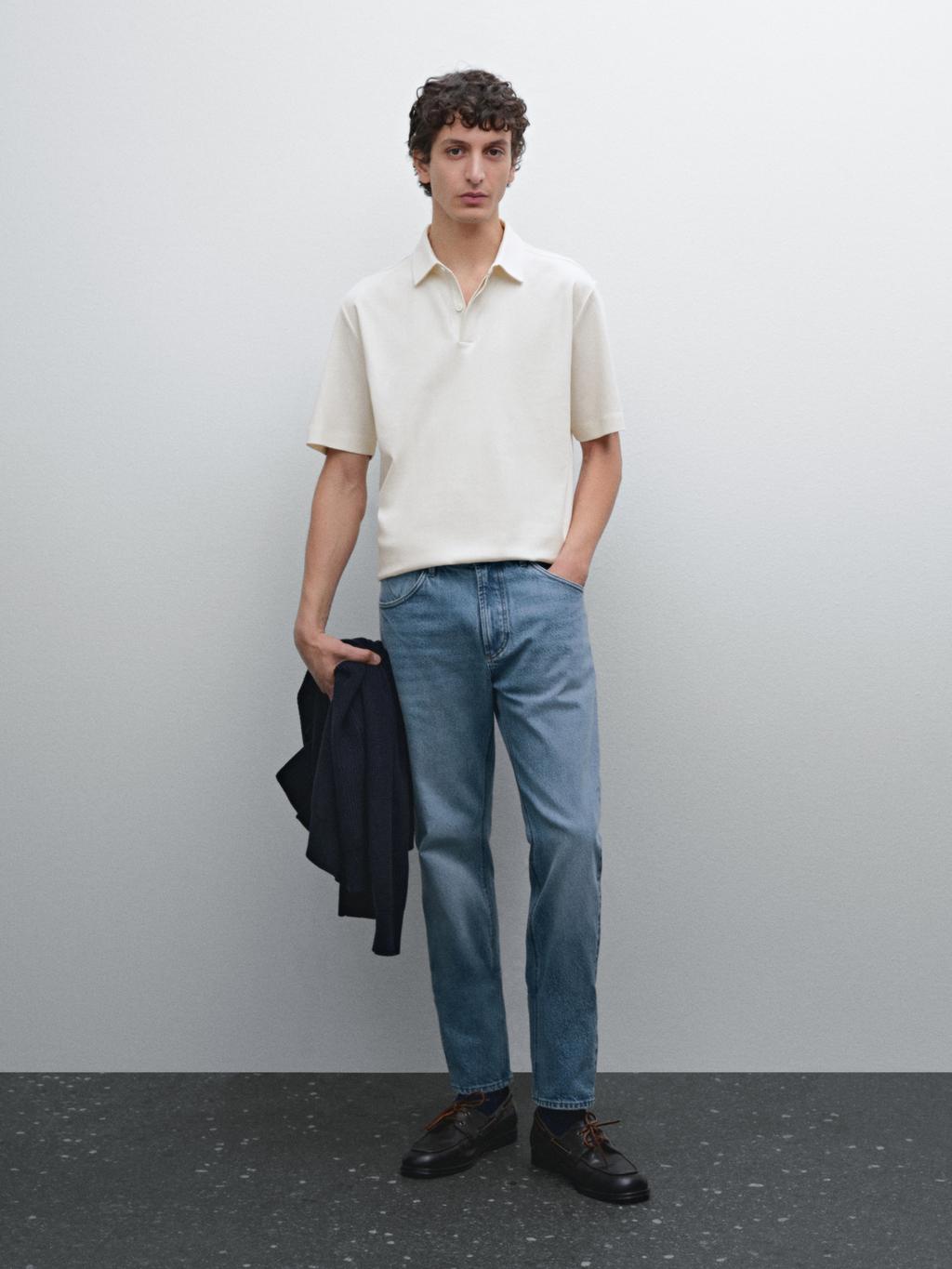 Поло из хлопка с короткими рукавами и планкой · Натуральный, Кремовый