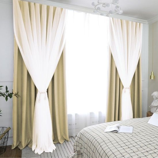 Комплект штор Уют-Текстиль Блэкаут с тюлем UT31 , 250х400см, бежевый