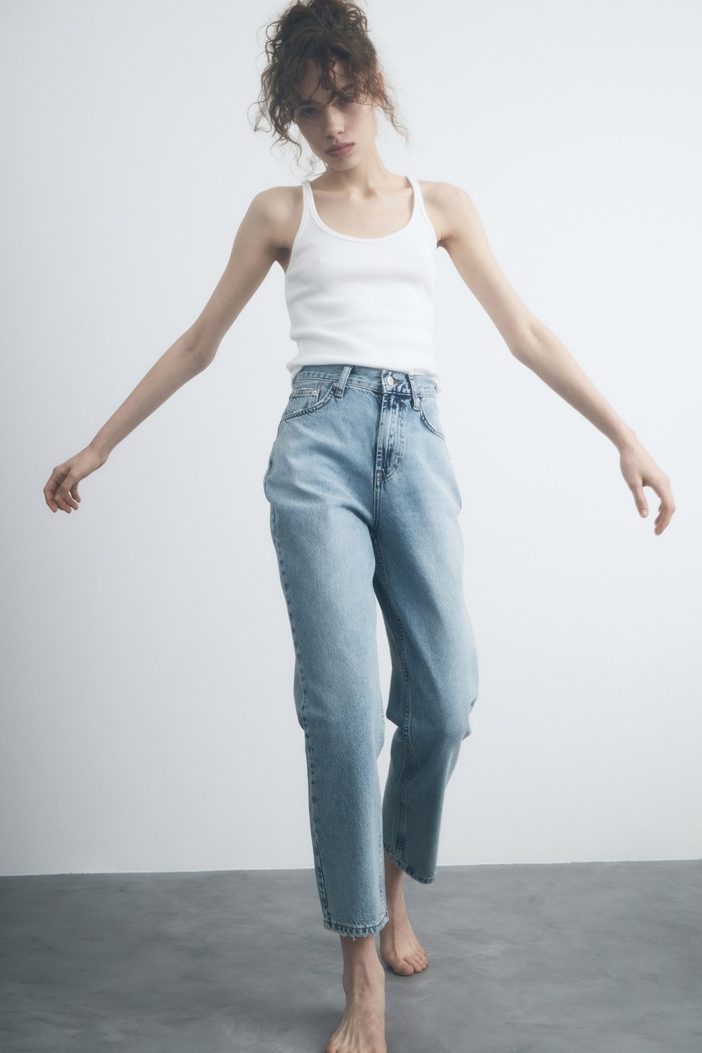 Укороченные джинсы прямого кроя винтажный синий цвет