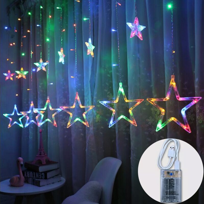 Коледни лампички, LED, Форма на звезда, 2.5 м, Батерия / USB