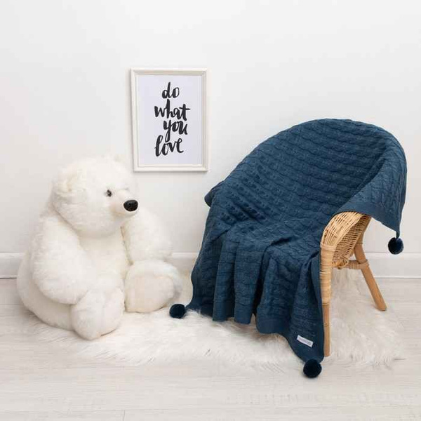 Вязаный плед Рисунок коса, 90х90 см, синий
