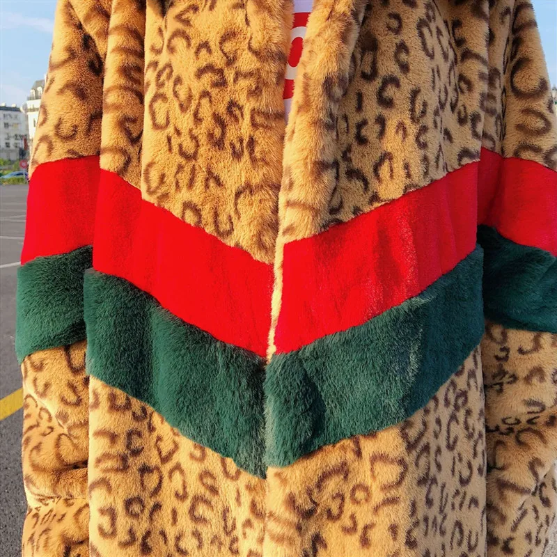 Мода лоскутное леопарда искусственного меха пальто с мехом для женщин