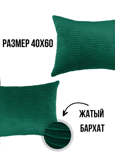 Подушка 40х60 с жатый бархат, изумруд 40x60