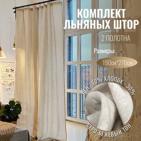 Комплект штор Linen Elegance Льняная вуаль , 270х190см, Серо-бежевый