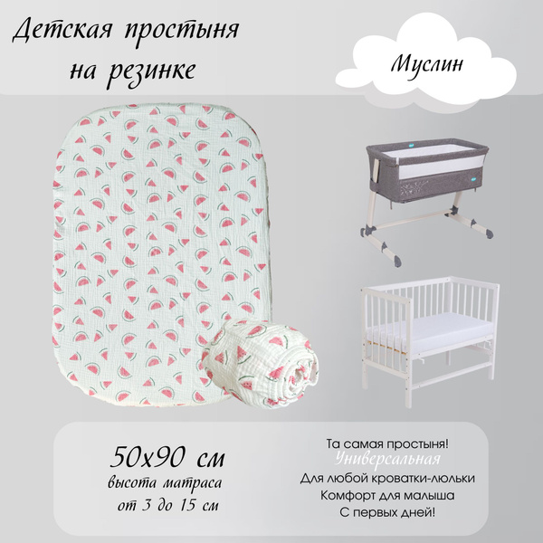Простыня EVA KIDS Простынь на резинке из муслина 90*200 (прямоугольник