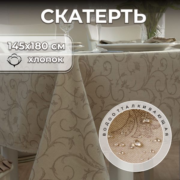 Скатерть на стол 145х180 см из хлопка с водоотталкивающей пропиткой